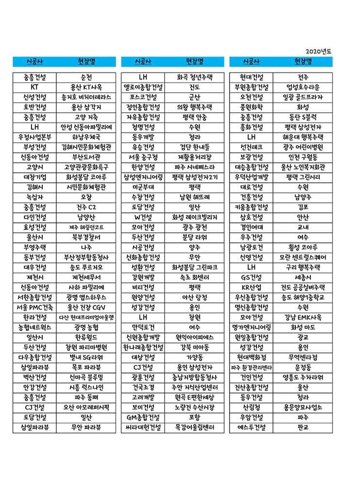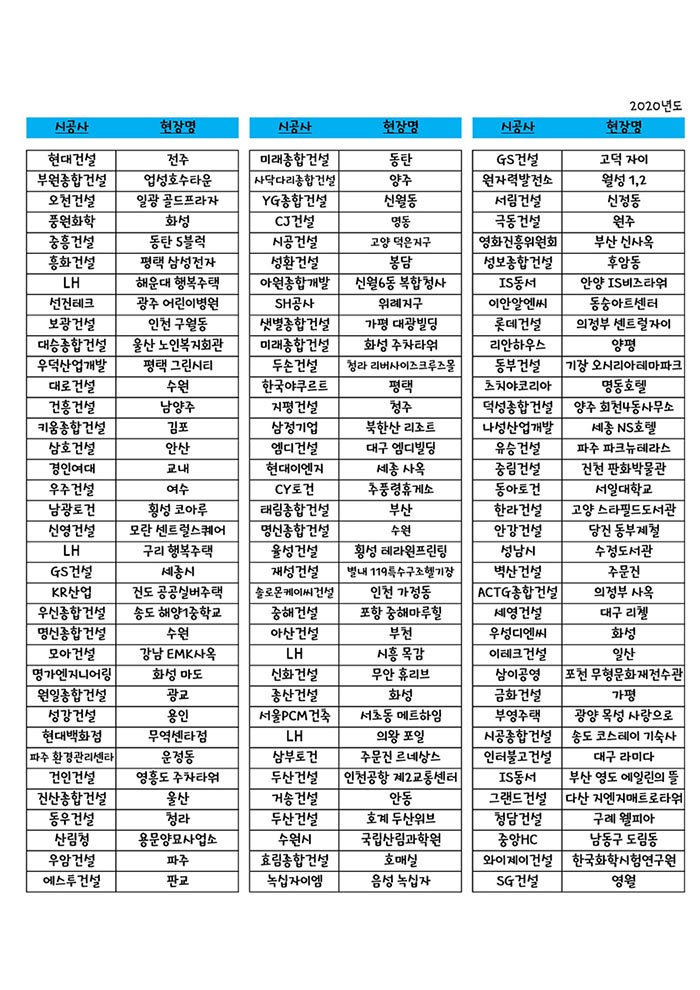 2020년 한해 시공을 열심히 했는데요.