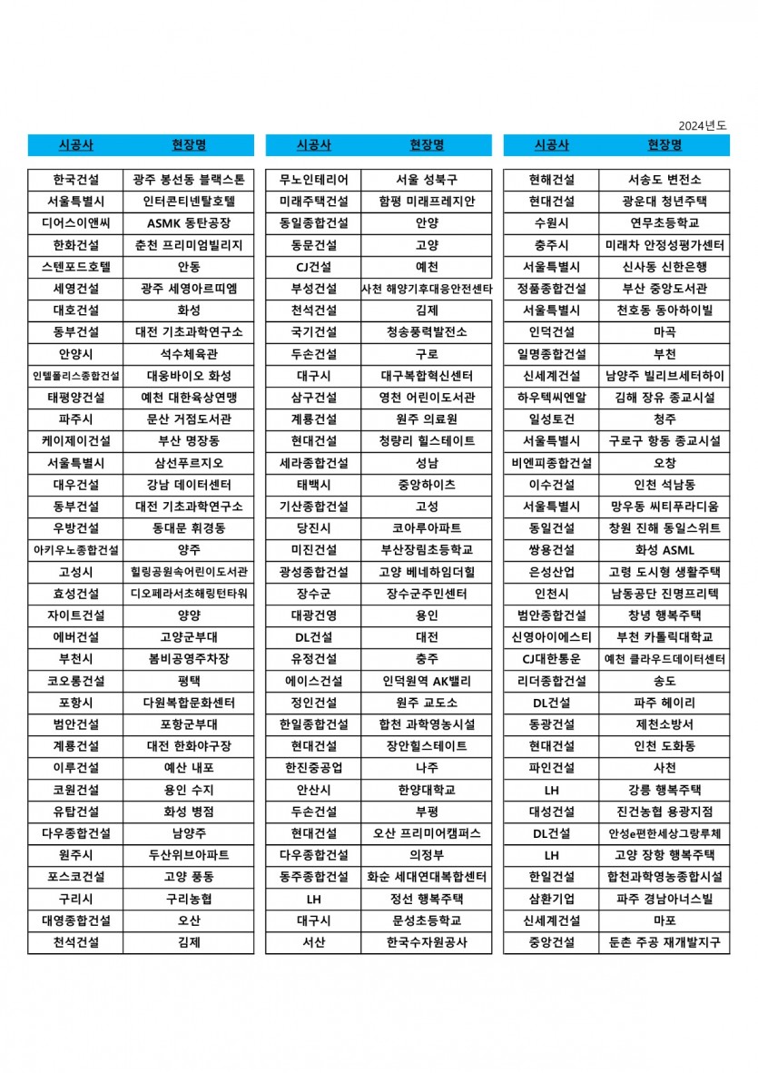 2024년도 시공실적을 갈무리 하여 알립니다.